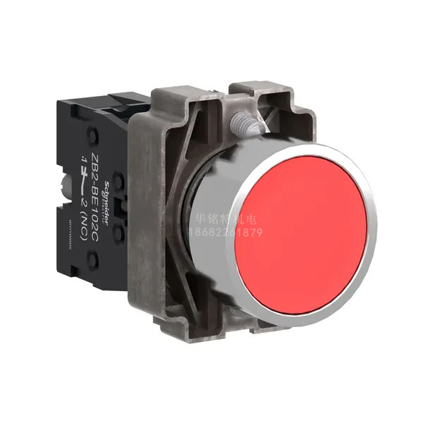Schneider/施耐德電氣XB2B平頭按鈕XB2BA42C是一款彈簧復位,安裝直徑22mm輔助觸點1NC的紅色平頭按鈕,XB2BA42C=ZB2BZ102C+ZB2BA4C。