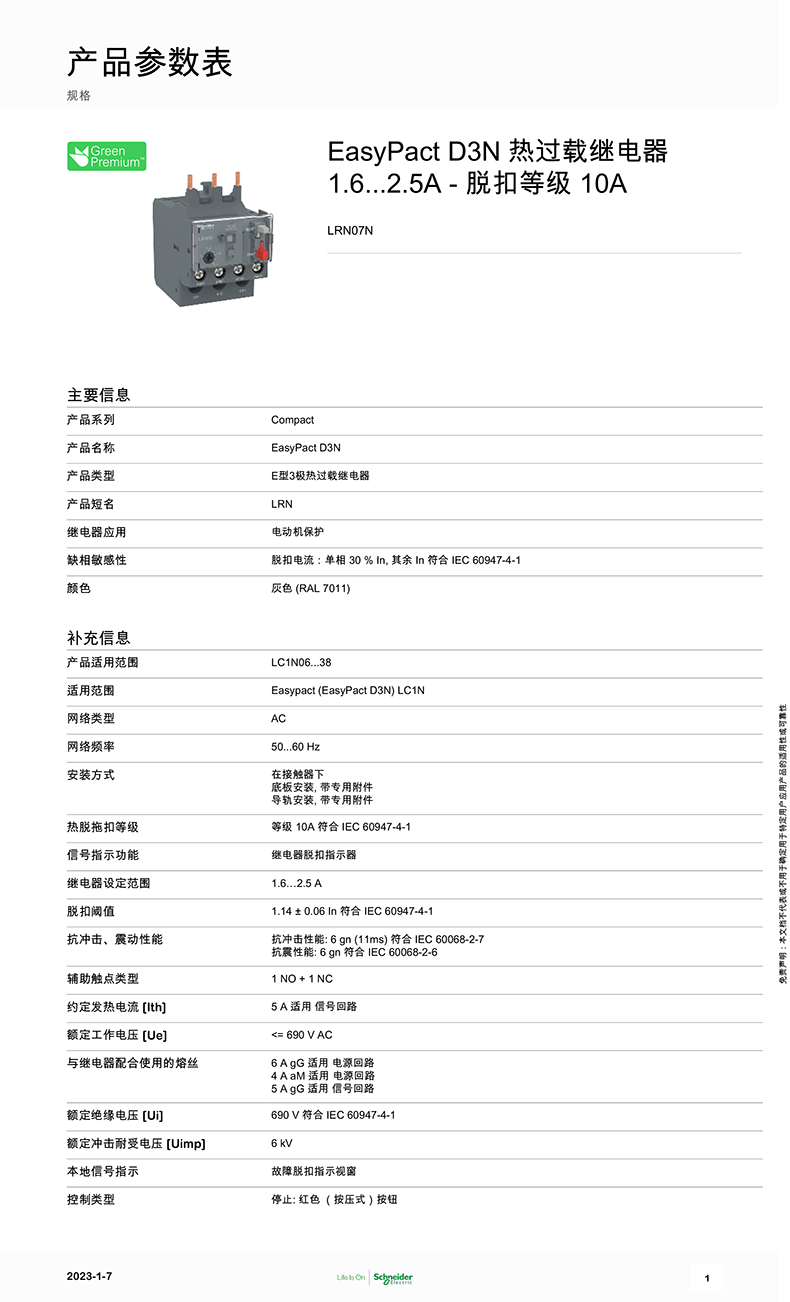 施耐德熱過載繼電器LRN系列LRN07N,施耐德熱繼電器批發,優惠價格
