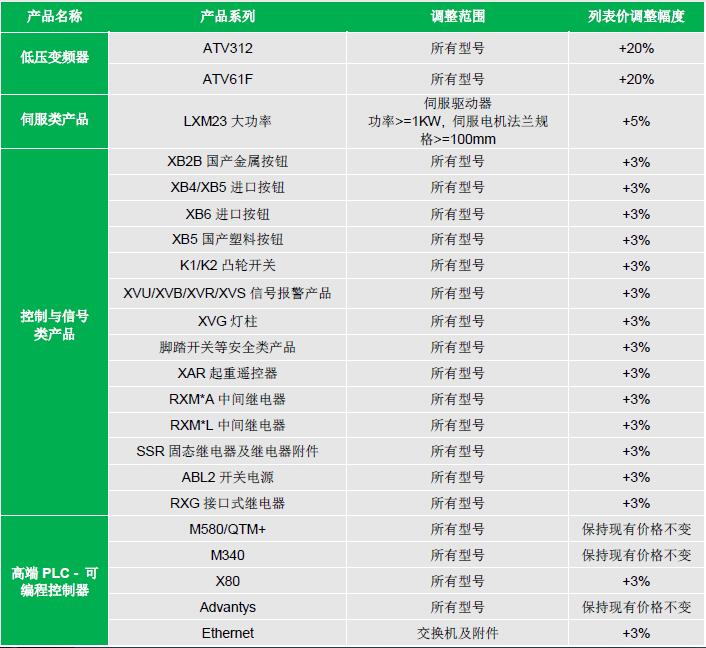 因原材料成本上升,為更好地適應市場環境,施耐德電氣工業事業部決定對部分產品進行價格調